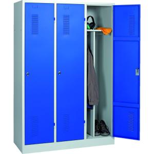 Porte à raidisseurs horizontaux avec évents d'aération haut et bas, 1 porte-étiquettes embouti et 1 fermeture par moraillon porte-cadenas.