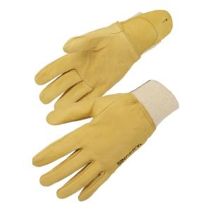 Montage américain (pouce palmé), poignet bord côte élastique avec protège artère en cuir et boutonnière.