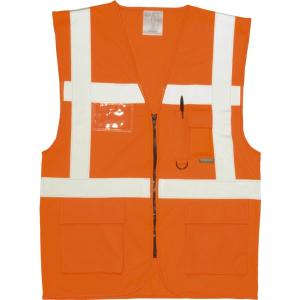 Bandes rétroréfléchissantes cousues sur la poitrine et les épaules.