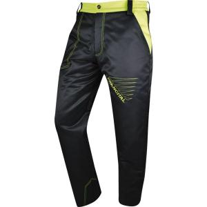 Ceinture semi-élastiquée avec passants et bavette dorsale, pointe entrejambe bi-extensibles pour plus de confort et de solidité.
