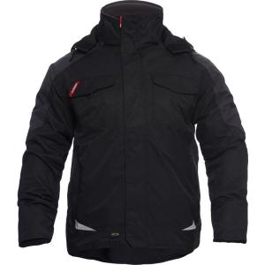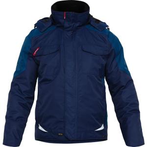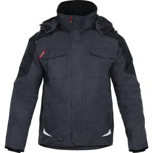 Encolure montante et dos allongé, coudes renforcés Cordura®, nombreuses poches fonctionnelles, entre autres grandes poches repose-mains avec fermeture à glissière, coupe-vent à l'intérieur des manches et à la taille, capuche amovible.