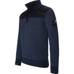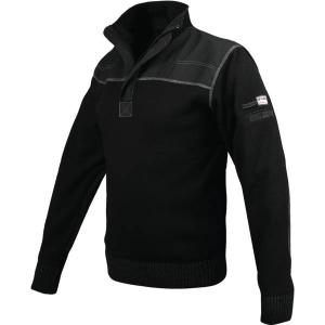 Bords côtes corps et poignets, renforts coudes et épaules.