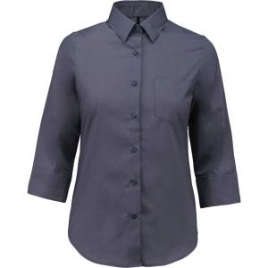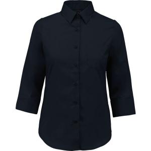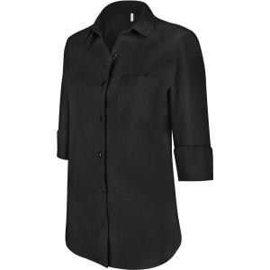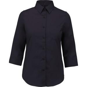 Coupe cintrée, manches 3/4. Col non boutonné, boutons ton sur ton, poche poitrine côté gauche en V, 1 bouton de rappel, bas arrondi.