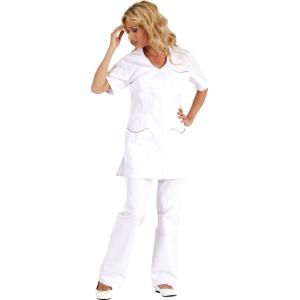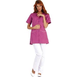 Sans col, fentes côtés, fermeture centrale par 5 pressions.