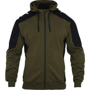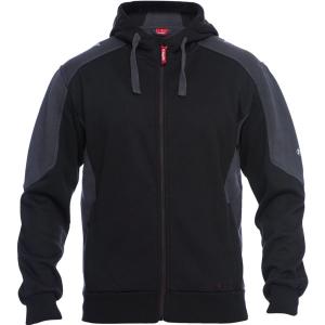 Bas et manches bord côtes, capuche avec cordon de serrage.