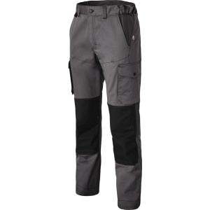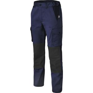 Poches italiennes. 1 poche plaquée au dos avec partie basse volante. 2 poches cuisse plaquées avec compartiment stylo + mètre. Accroche clefs.